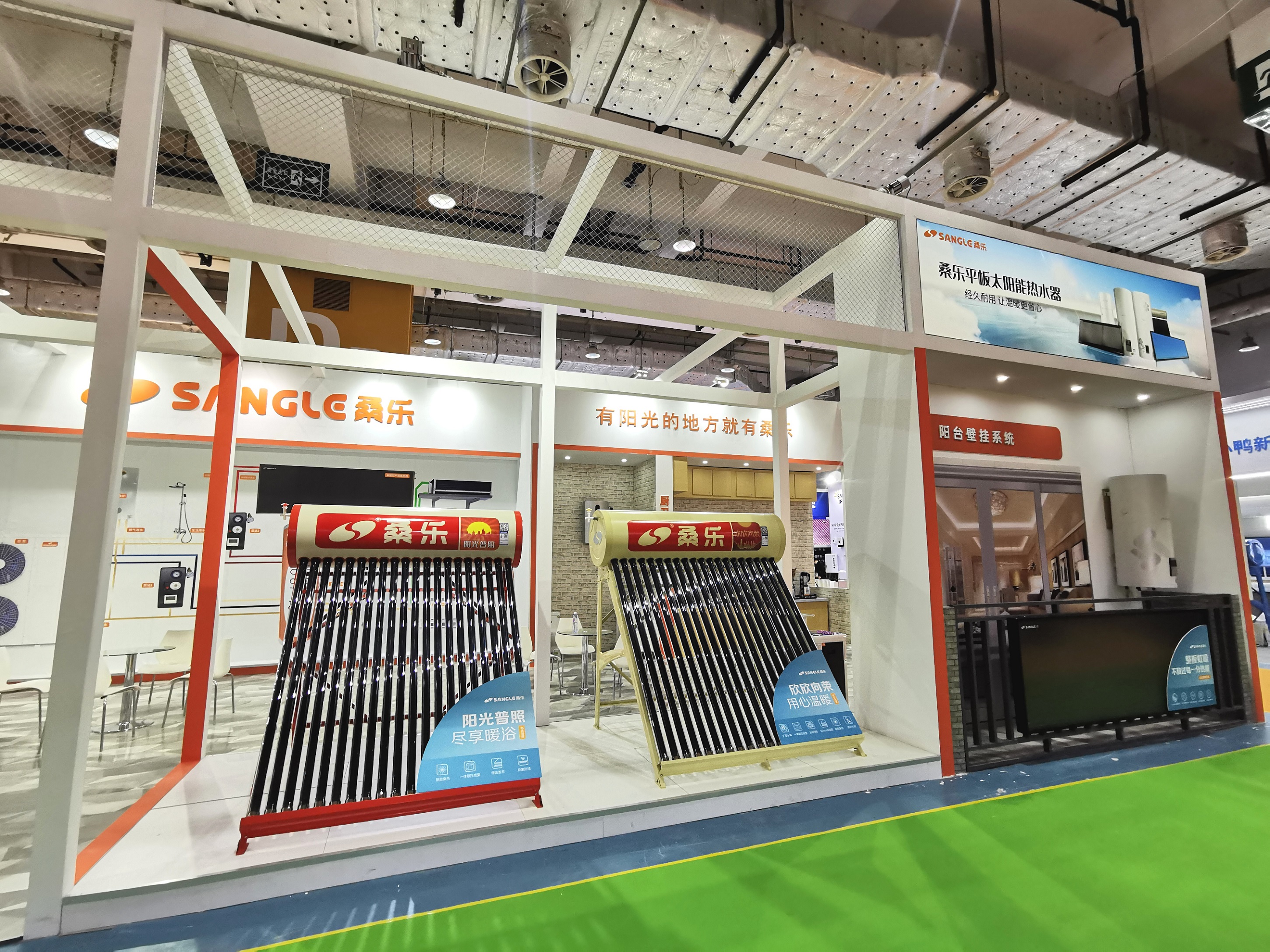 桑樂集團(tuán)結(jié)合本次大會(huì)“發(fā)展綠色能源,助力動(dòng)能轉(zhuǎn)換”主題,以太陽能+多能互補(bǔ)綜合能源系統(tǒng)為核心,現(xiàn)場集中展示了平板太陽能熱水器、真空管太陽能熱水器、速熱熱水器、電熱水器、燃?xì)鉄崴?、廚房電器、生活小電等產(chǎn)品。展會(huì)期間,桑樂展區(qū)吸引了許多參觀者駐足觀看。