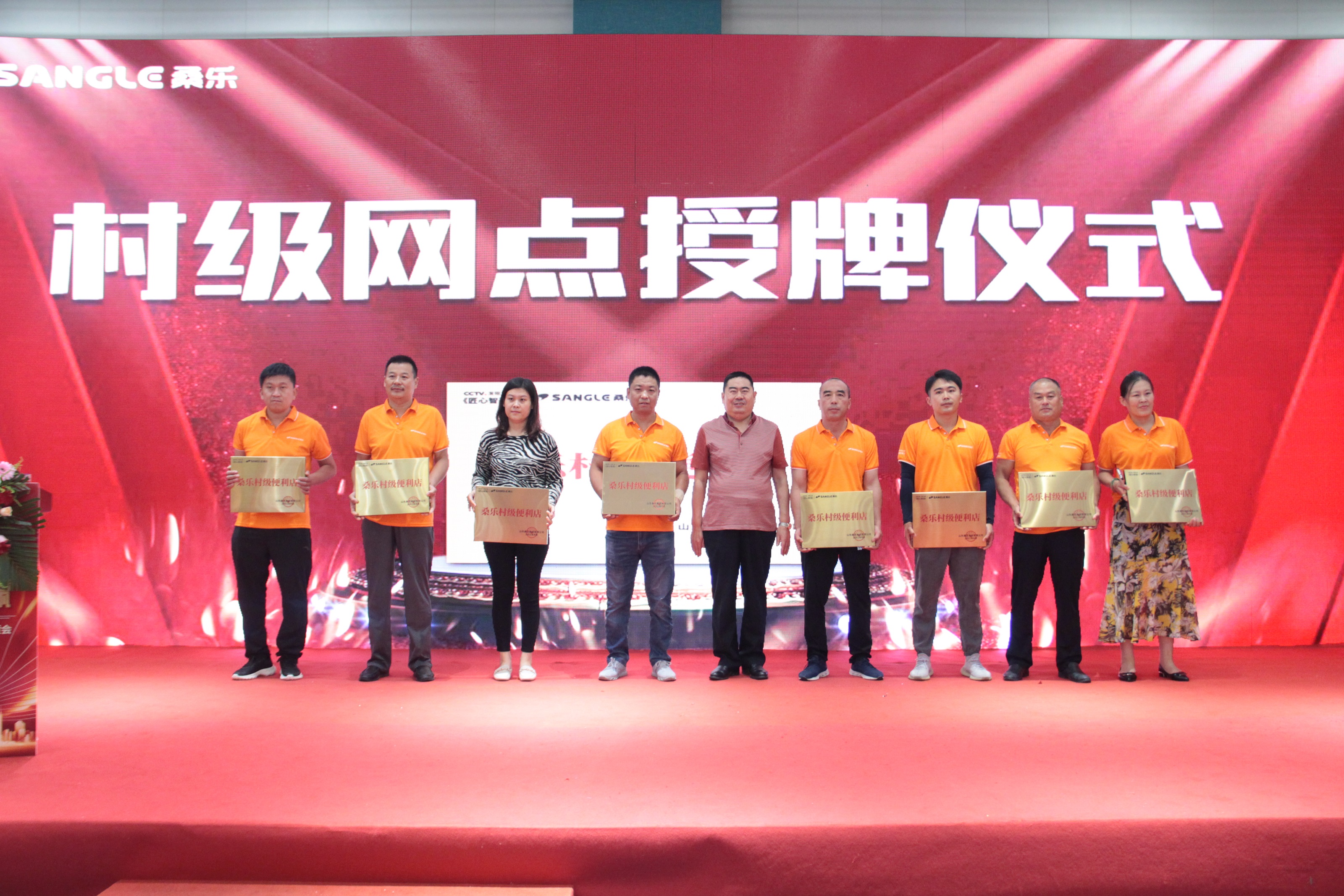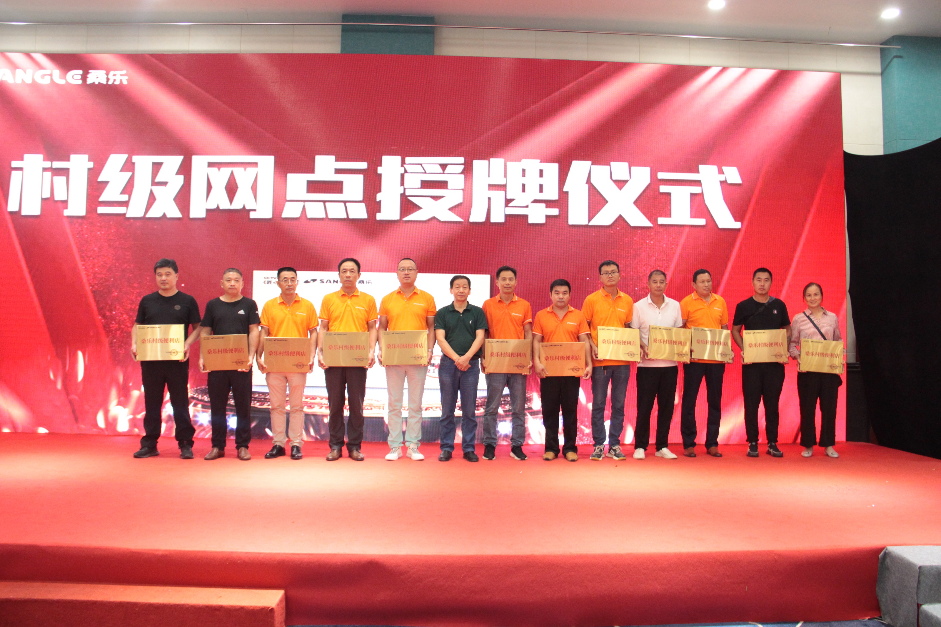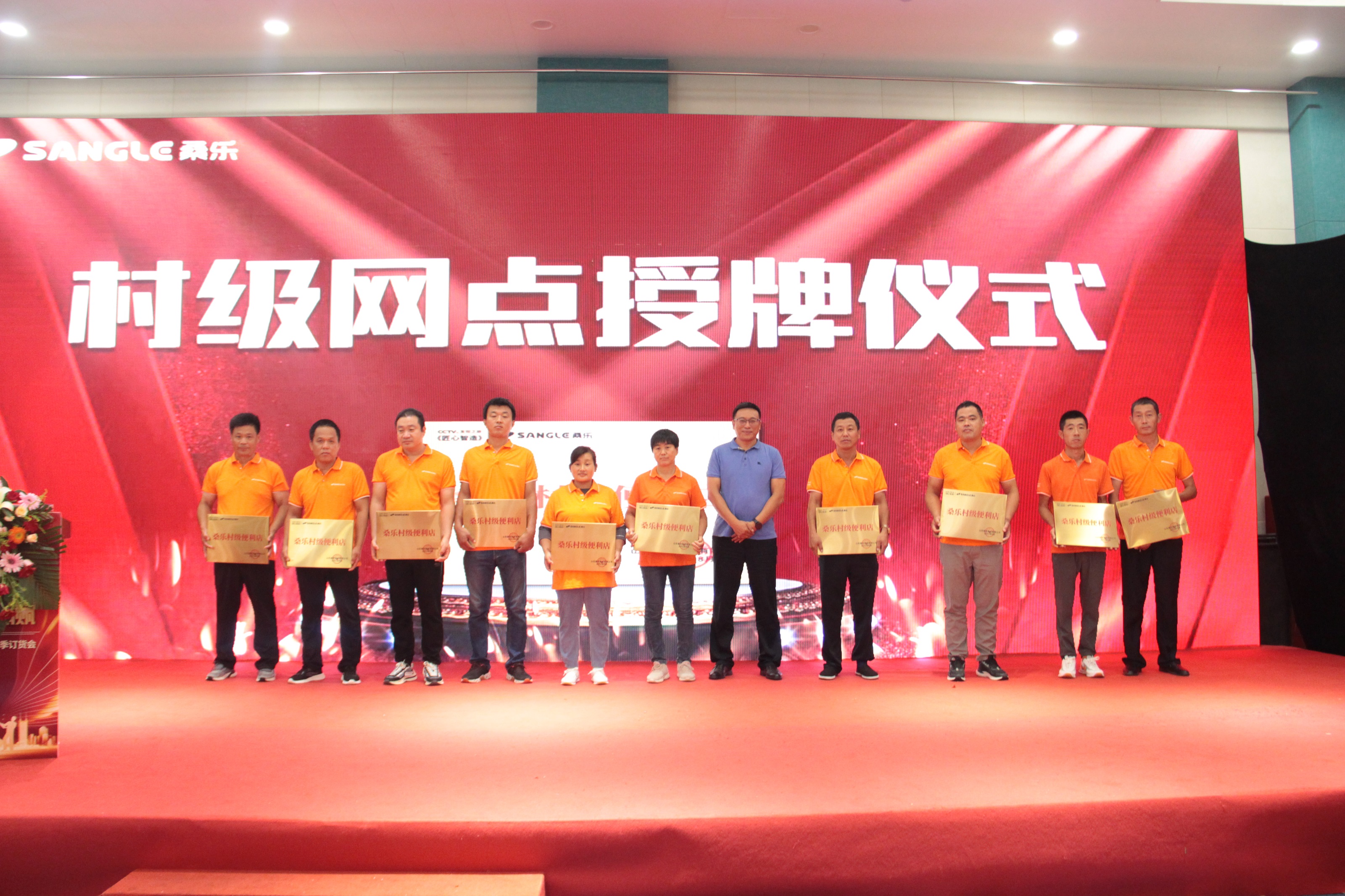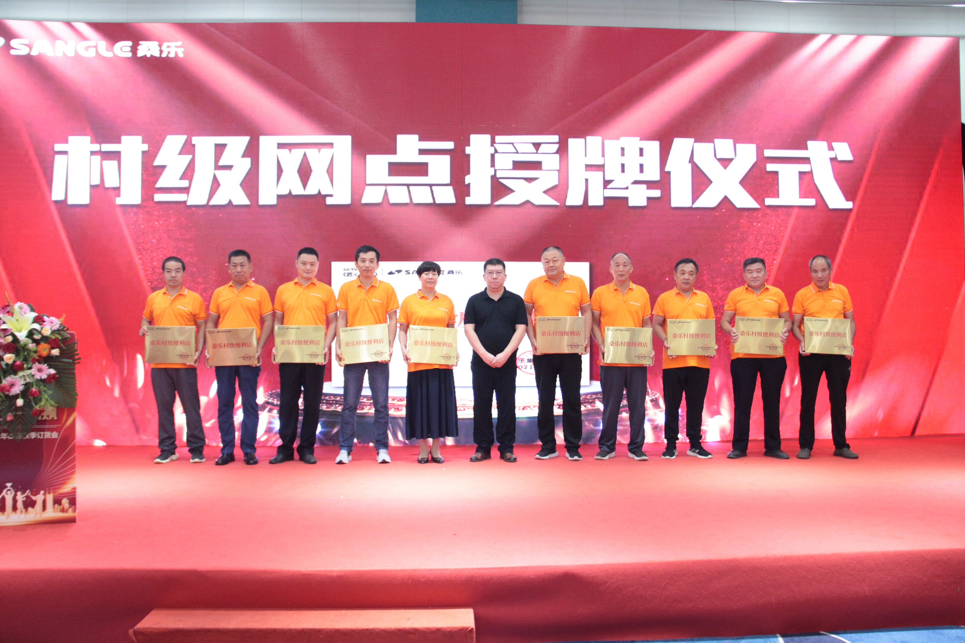 為激勵鄉(xiāng)鎮(zhèn)經銷商,立足鄉(xiāng)鎮(zhèn)市場,本次會議還為有突出貢獻的經銷商授予“桑樂村級便利店”獎牌,集團常務副總經理馮磊,副總經理、總廠廠長趙中強,副總經理張興東,副總經理、總會計師周鋒上臺為百名山東省內優(yōu)秀經銷商授牌。隨著國家對鄉(xiāng)村振興戰(zhàn)略的工作開展,構建桑樂村級便利店,更是成為了桑樂強而有力的助推器。