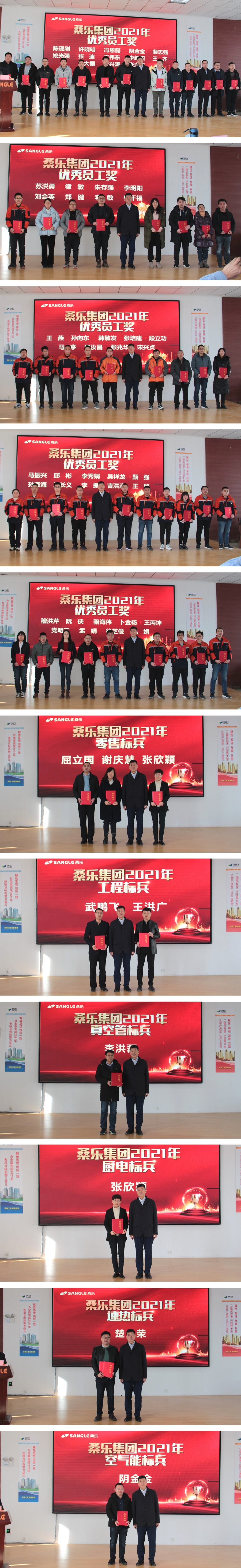 馮總宣讀了2021年優(yōu)秀員工、零售標兵、工程標兵、真空管家用機銷售標兵、廚電銷售標兵、電熱銷售標兵、速熱銷售標兵、空氣能銷售標兵的獲獎名單,董事長為獲得榮譽的職工頒發(fā)證書。